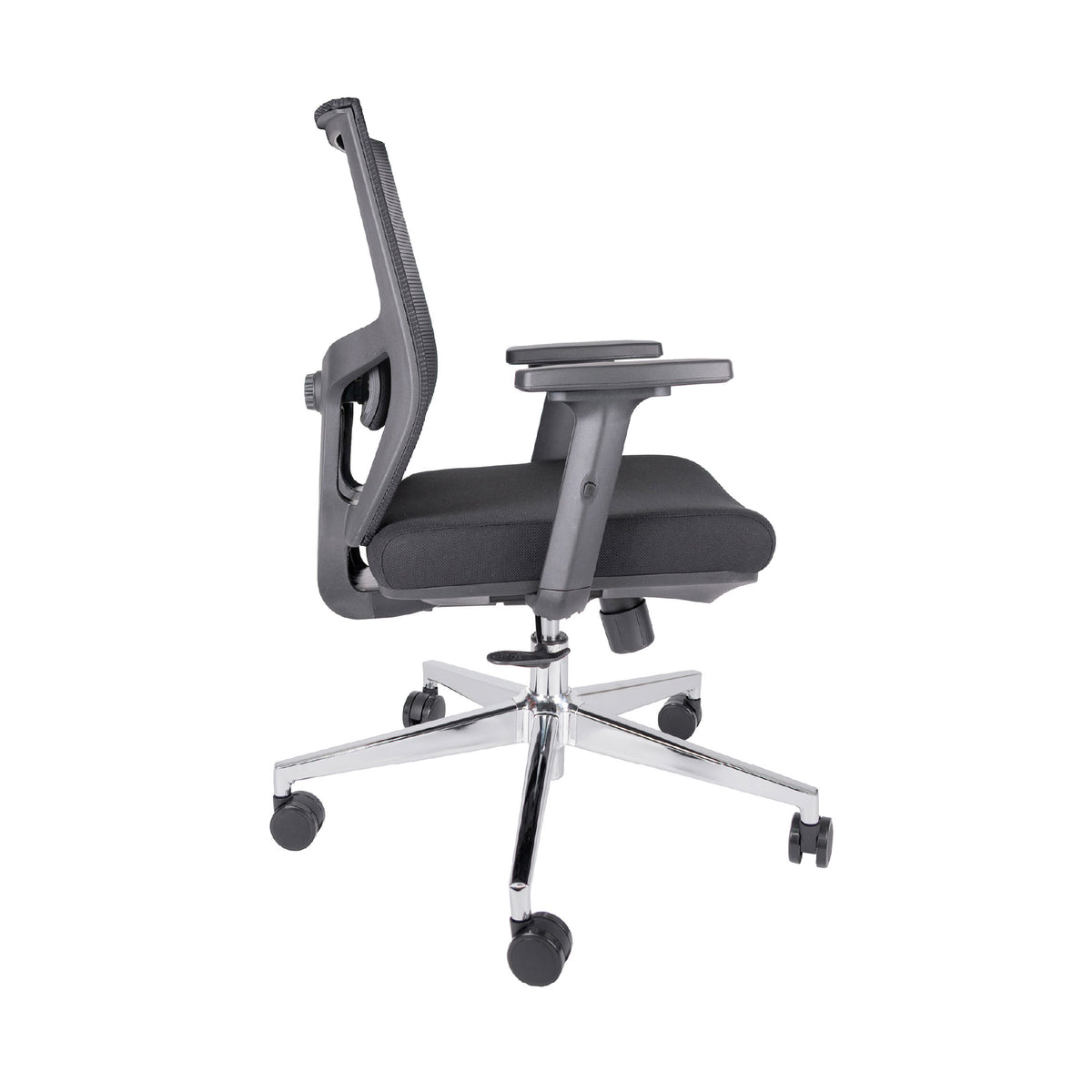 Base: estrella de 5 puntas en acero cromado, rodajas tipo dual. Elevación: por medio de pistón neumático que permite ajustar la altura...